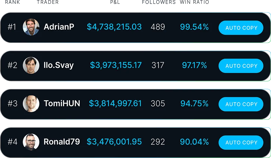 - Track top traders’ performance in real time